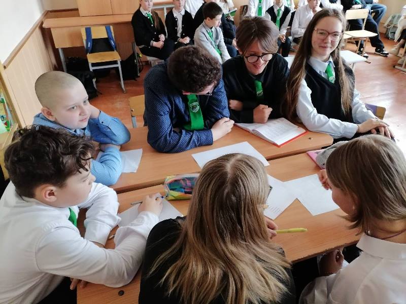Ученики 5 "А" класса вместе с учениками 8 "А" класса участвовали в занимательной викторине. В жюри вошли учащиеся 9 "А" класса. Жюри было строгим, но справедливым. Ребята отвечали на вопросы, слушали стихи и романсы. Мероприятие понравилось и участникам, и болельщикам.