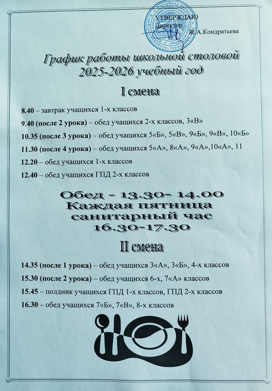 Предлагаем вашему вниманию график работы школьной столовой в текущем учебном году.